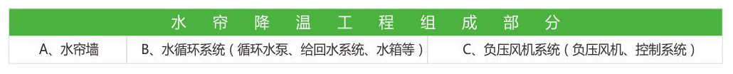 水簾降溫工程利用和環保空調相同的降溫原理,將水簾和負壓風機完美結合利用。其利用的蒸發器同樣是直接蒸發式換熱器"多層波纖維疊合物"水簾是瑞典的專利產品,